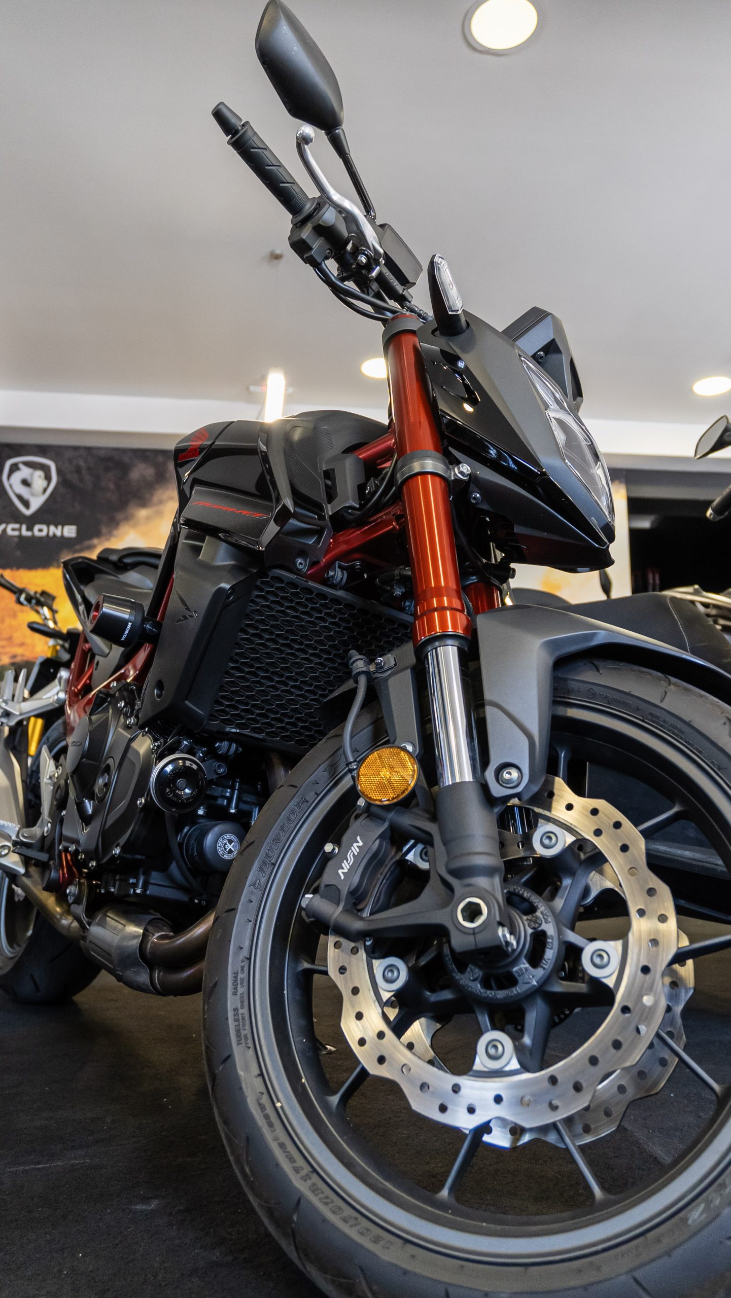 Honda Hornet 750, ano 2023, em excelente estado de conservação. Moto potente, moderna e muito confortável, perfeita tanto para o uso diário quanto para viagens. Está com baixa quilometragem, todas as revisões feitas em concessionária autorizada, com manual, chave reserva e documentação em dia. Modelo equipado com motor bicilíndrico de 755cc, 92,9 cv de potência, câmbio de 6 marchas, modos de pilotagem, controle de tração e painel digital TFT com conectividade. A suspensão é Showa e os freios contam com ABS de fábrica.